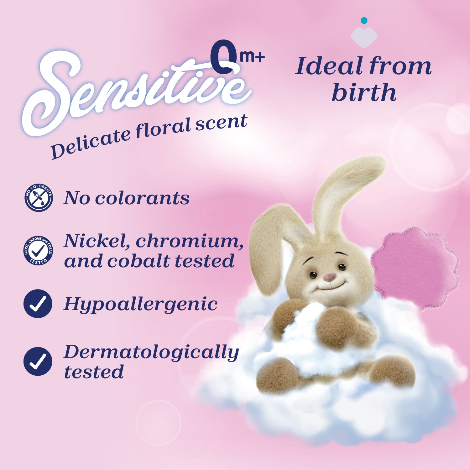 - Împrospătează, parfumeaza delicat si catifelează articolele de îmbrăcăminte pentru copii fără a irita pielea sensibila ( formula pentrureducerea riscului de alergii).
