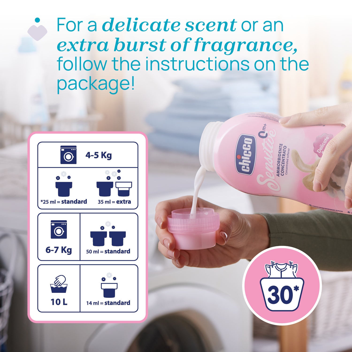 Orice articol al copilului dvs va deveni placut la atingere cu balsamul CHICCO, fara a irita pielea sensibila a acestuia. Aditivii naturali parfumeaza usor fara a deteriora culorile sau tesatura materialului.