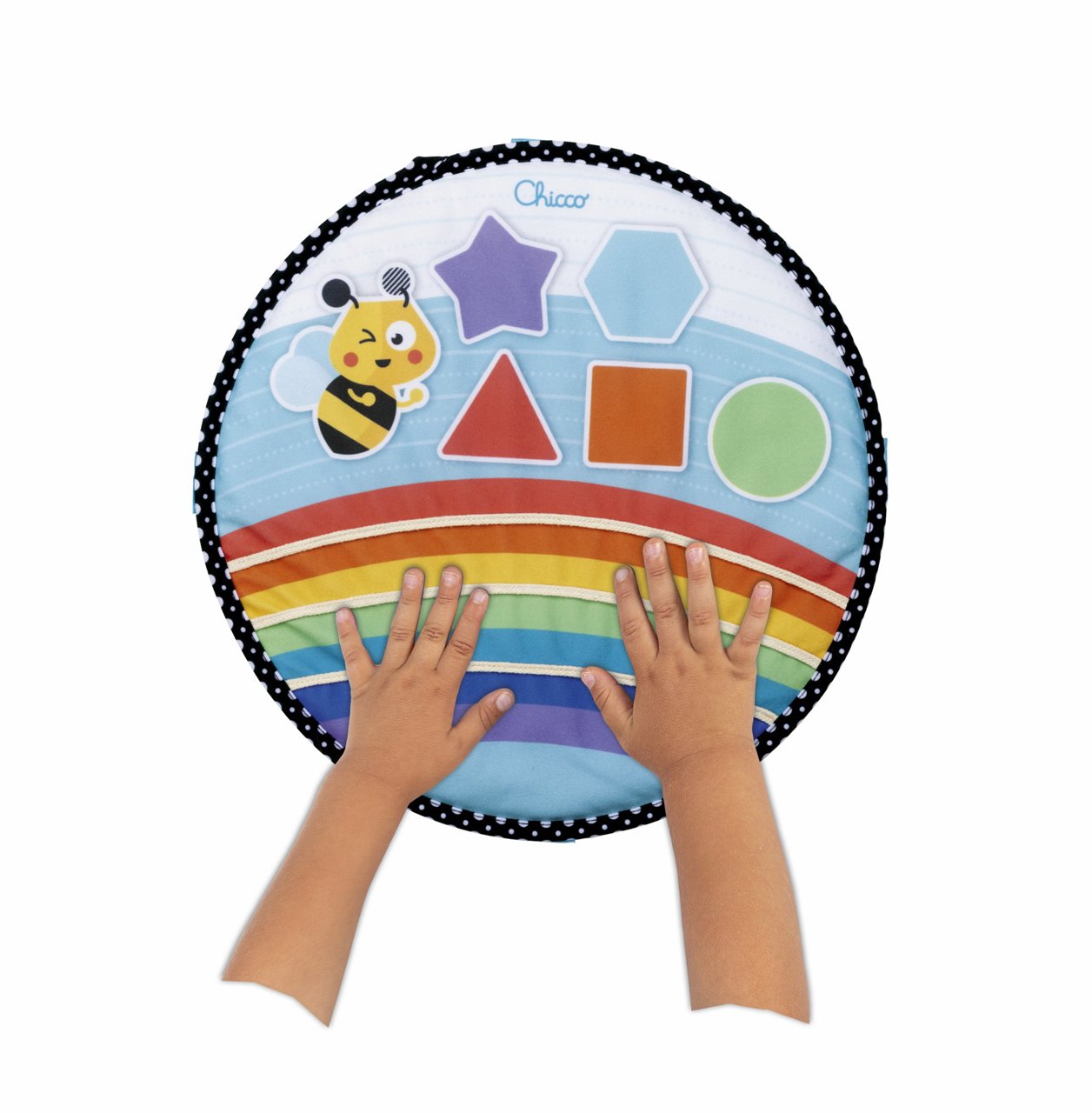 - 5 discuri din material textil, reprezentand cele 4 anotimpuri si 1 curcubeu. Fiecare disc este caracterizat de de un stimul special care ajuta micutul sa-si dezvolte abilitatile specifice.