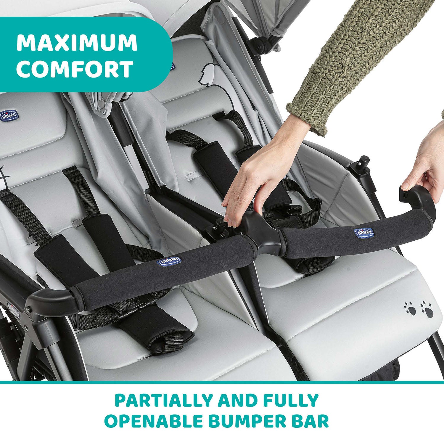 Chicco Ohlala Twin este un cărucior pentru gemeni 2 în 1 extrem de ușor și compact. Aliatul perfect al părinților de gemeni, căruciorul Ohlala Twin va atrage atenția imediat cu aspectul să mdern îi elegant și va deveni un partener de încredere în viața de zi cu zi, fiind confortabil, ușor de ridicat și de transportat.