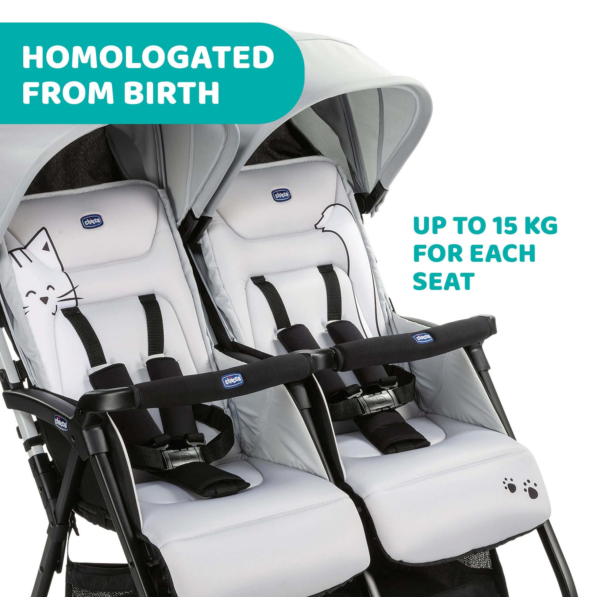 Carucior gemeni Chicco Ohlala, Silver Cat (Gri), 0luni+