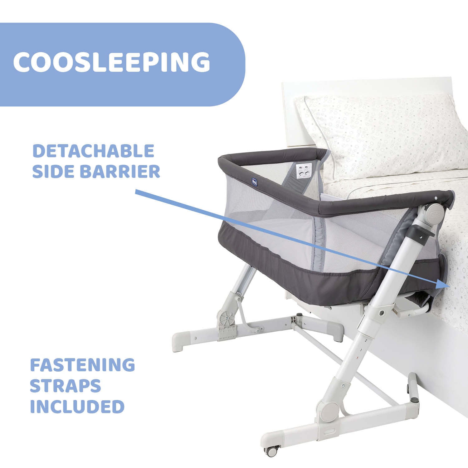 Chicco Next2Me Pop Up ofera confort pentru bebelusi si parinti deopotriva. Cand patutul se afla in pozitia "atasat de patul parintilor", bariera protectoare detasabila permite acces usor la bebelus atunci cand trebuie hranit, rasfatat sau pentru momentele in care are nevoie sa fie linistit in timpul noptii.