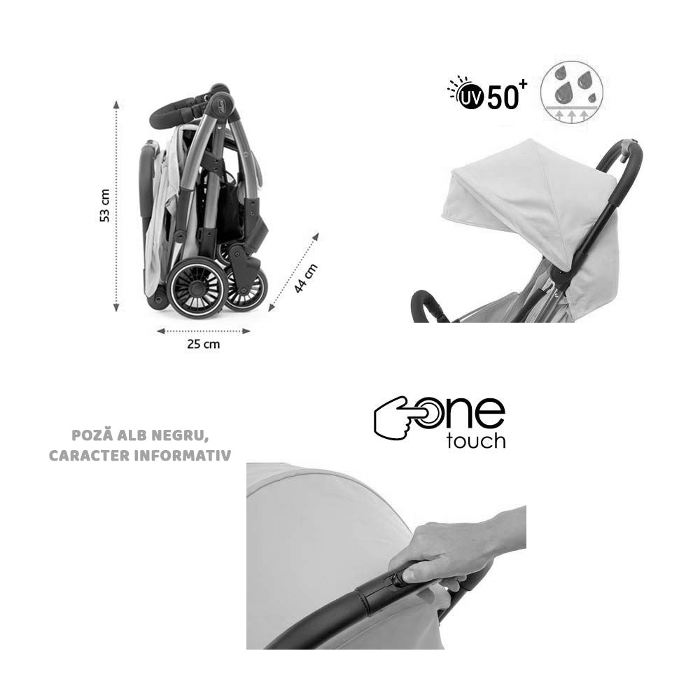 3. usor de utilizat: datorita sistemului de inchidere/deschidere "One Touch" cu o singura mana. Bara caruciorului poate fi utilizata si ca maner de transport. Cheerio este foarte usor ca greutate, cantarind 5.6 kg