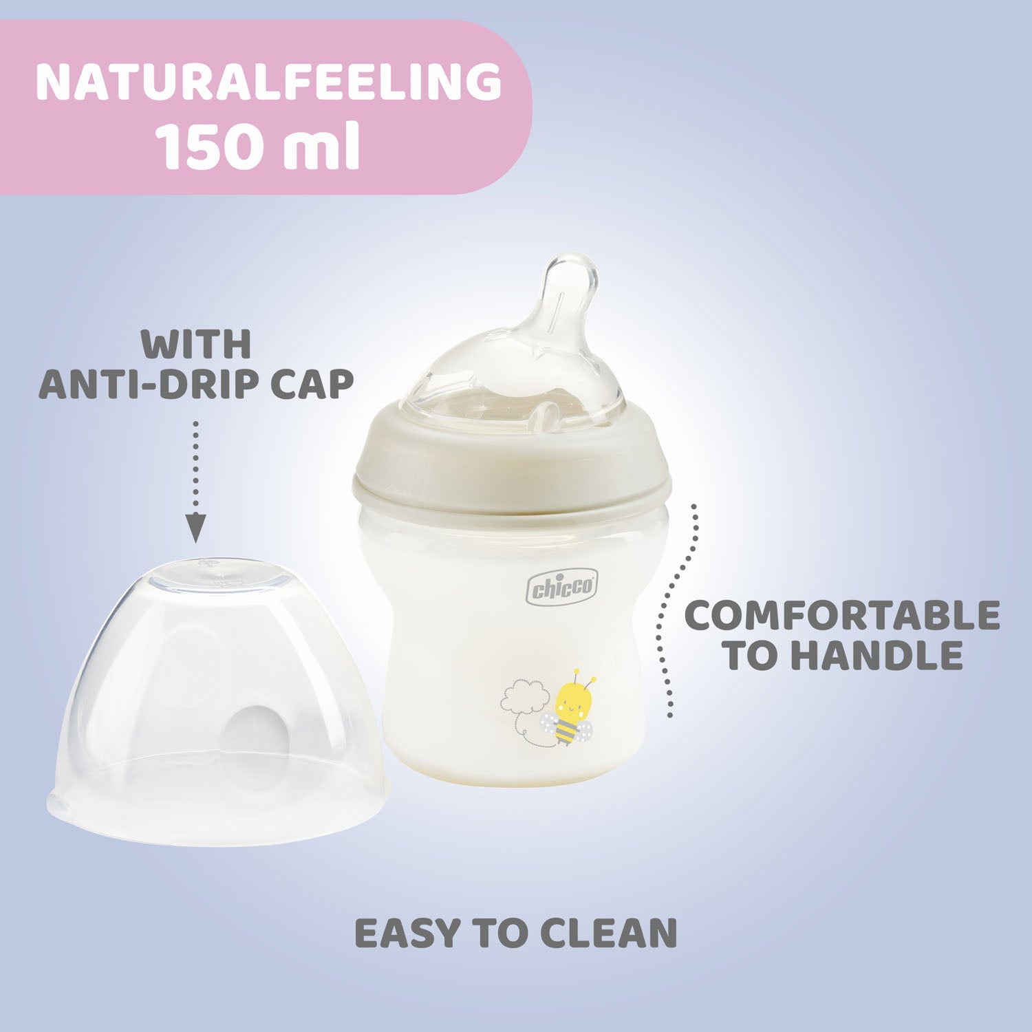 Biberon Chicco Natural Feeling PP, 150ml, unisex, tetina s., 0luni+, 0%BPA
