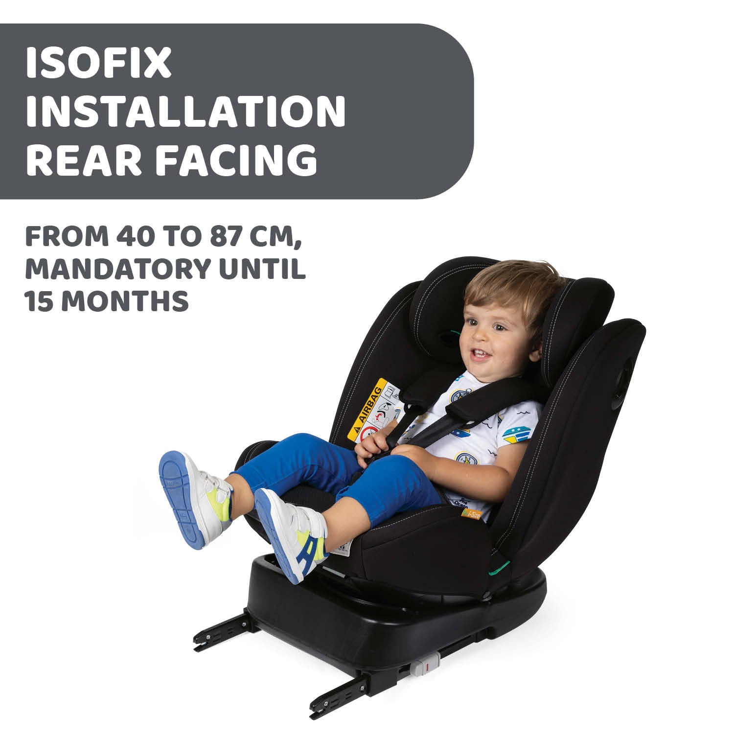 Scaun auto rotativ Chicco Unico EVO i-Size, Black (Negru), de la nastere pana la 12 ani (40-150 cm)