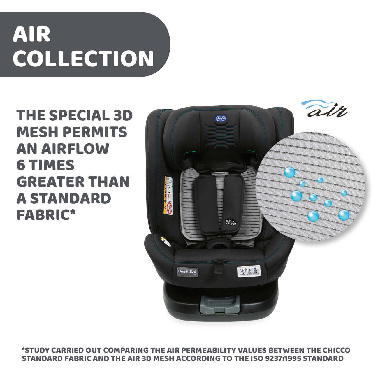 Scaun auto rotativ Chicco Unico EVO i-Size, BlackAir (Negru), de la nastere pana la 12 ani (40-150 cm)