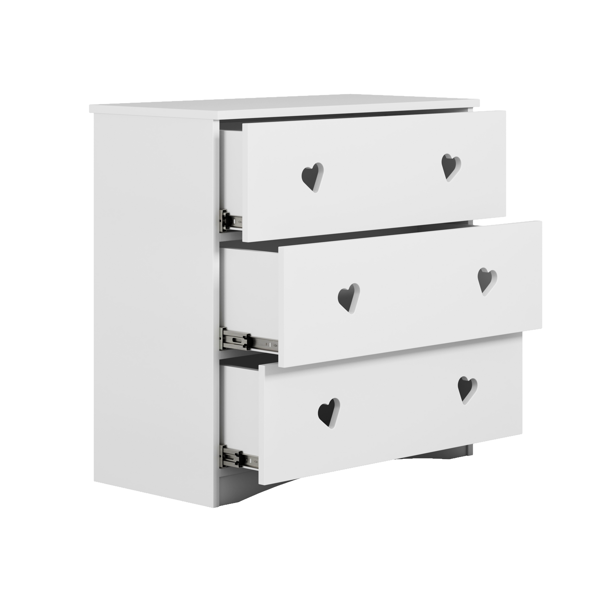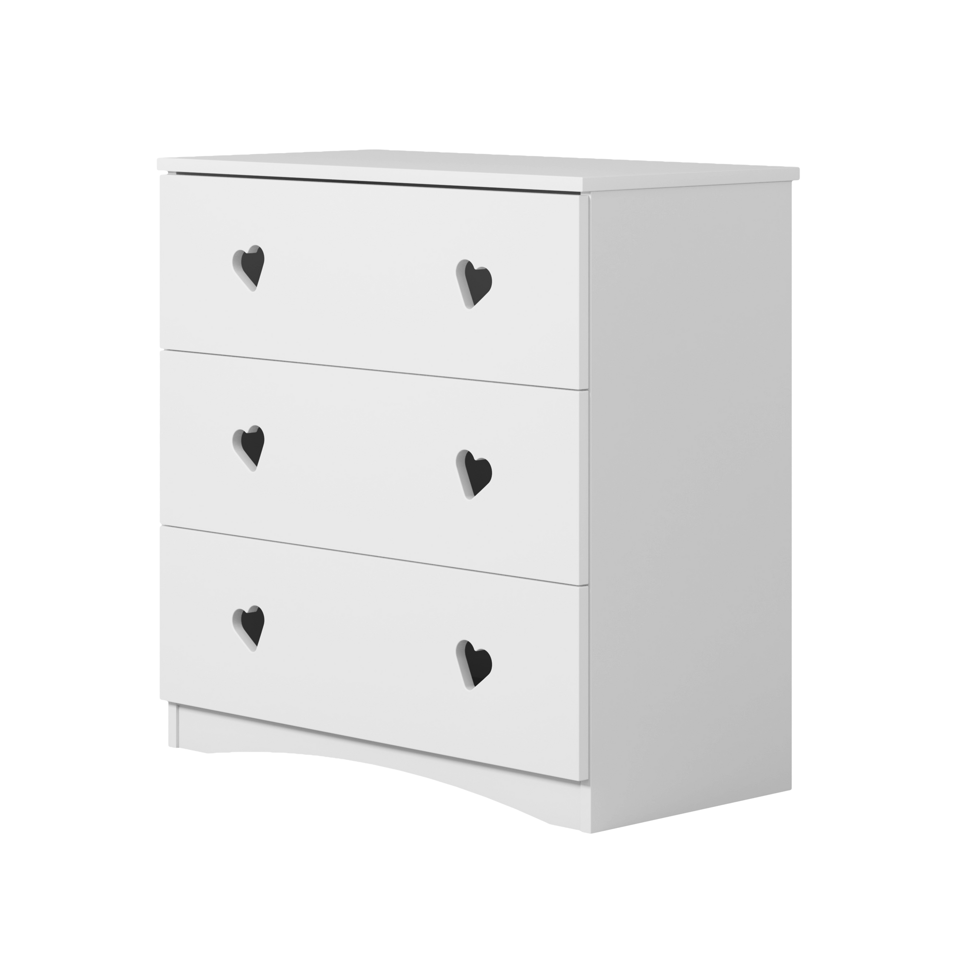 Comoda Julia este o piesă de mobilier creată pentru camerele celor mici, cu un design delicat și modern, ușor de integrat în orice decor. Finisajul alb și decupajele în formă de inimă îi oferă un aer prietenos și elegant, iar liniile curate o fac potrivită atât pentru bebeluși, cât și pentru copii mai mari. Este fabricată din PAL laminat și MDF lăcuit, materiale rezistente, ușor de curățat și sigure pentru utilizarea de zi cu zi.