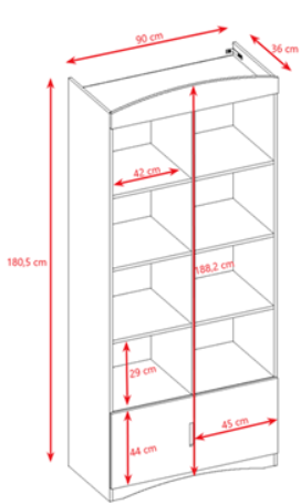 Realizată din materiale rezistente și ușor de întreținut, biblioteca oferă stabilitate și durabilitate, fiind potrivită pentru utilizarea zilnică. Rafturile sunt bine distanțate, oferind loc suficient pentru cărți mari, jocuri sau decorațiuni.