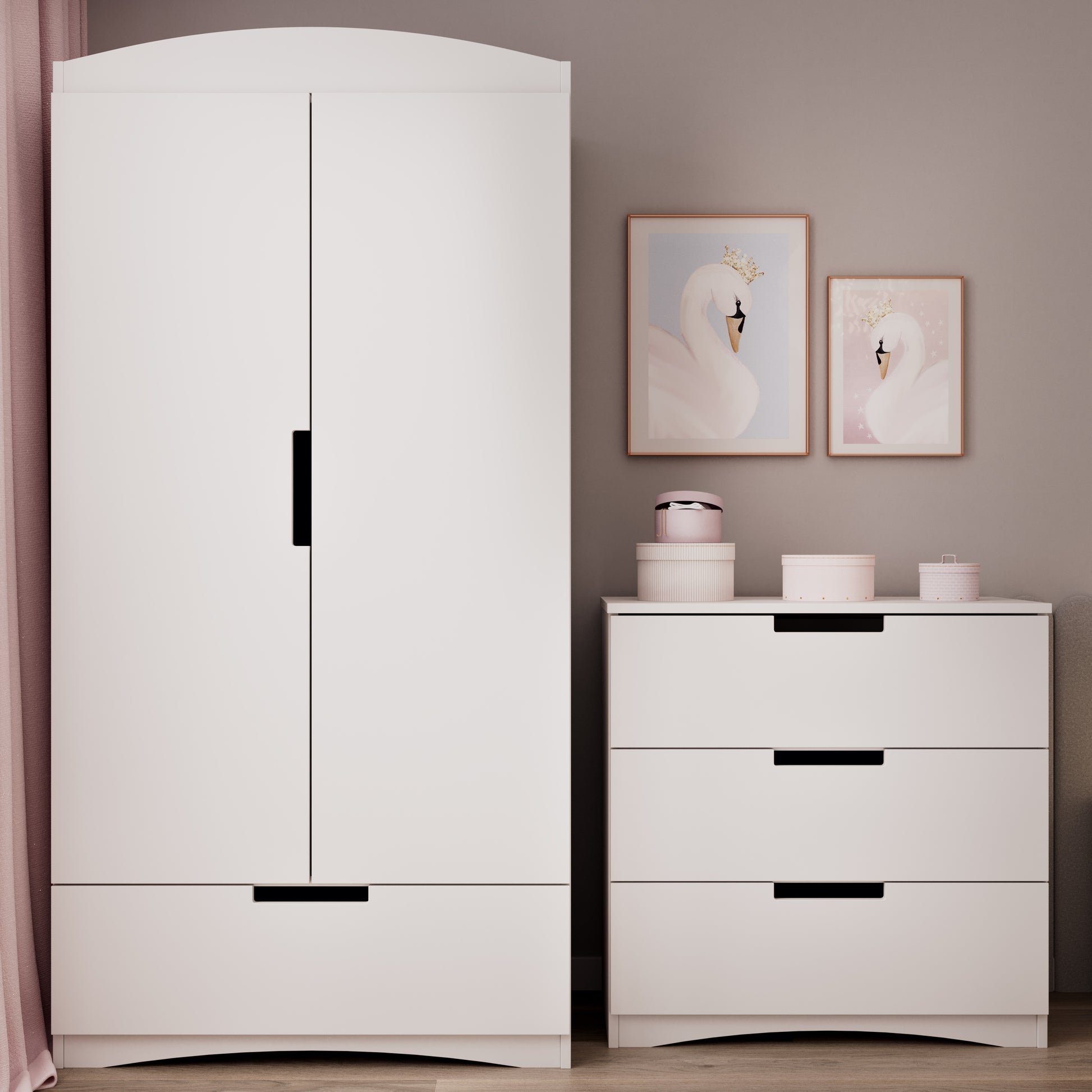 Dispune de rafturi spațioase, un compartiment mare pentru umerașe (dacă modelul include bară), plus un sertar încăpător în partea inferioară — perfect pentru lenjerii, pijamale sau jucării. Construit din materiale rezistente, dulapul este stabil și durabil, fiind potrivit pentru utilizare zilnică.