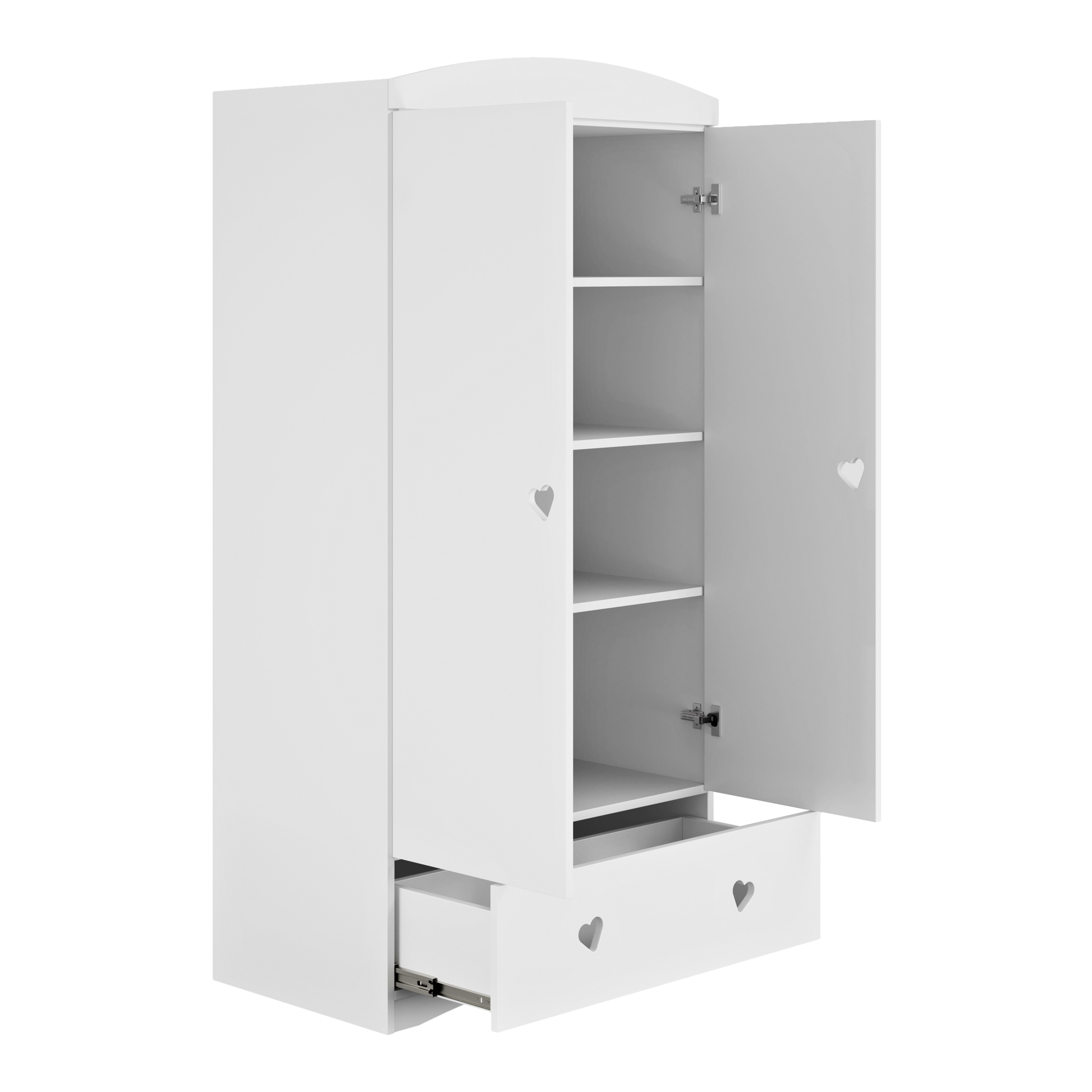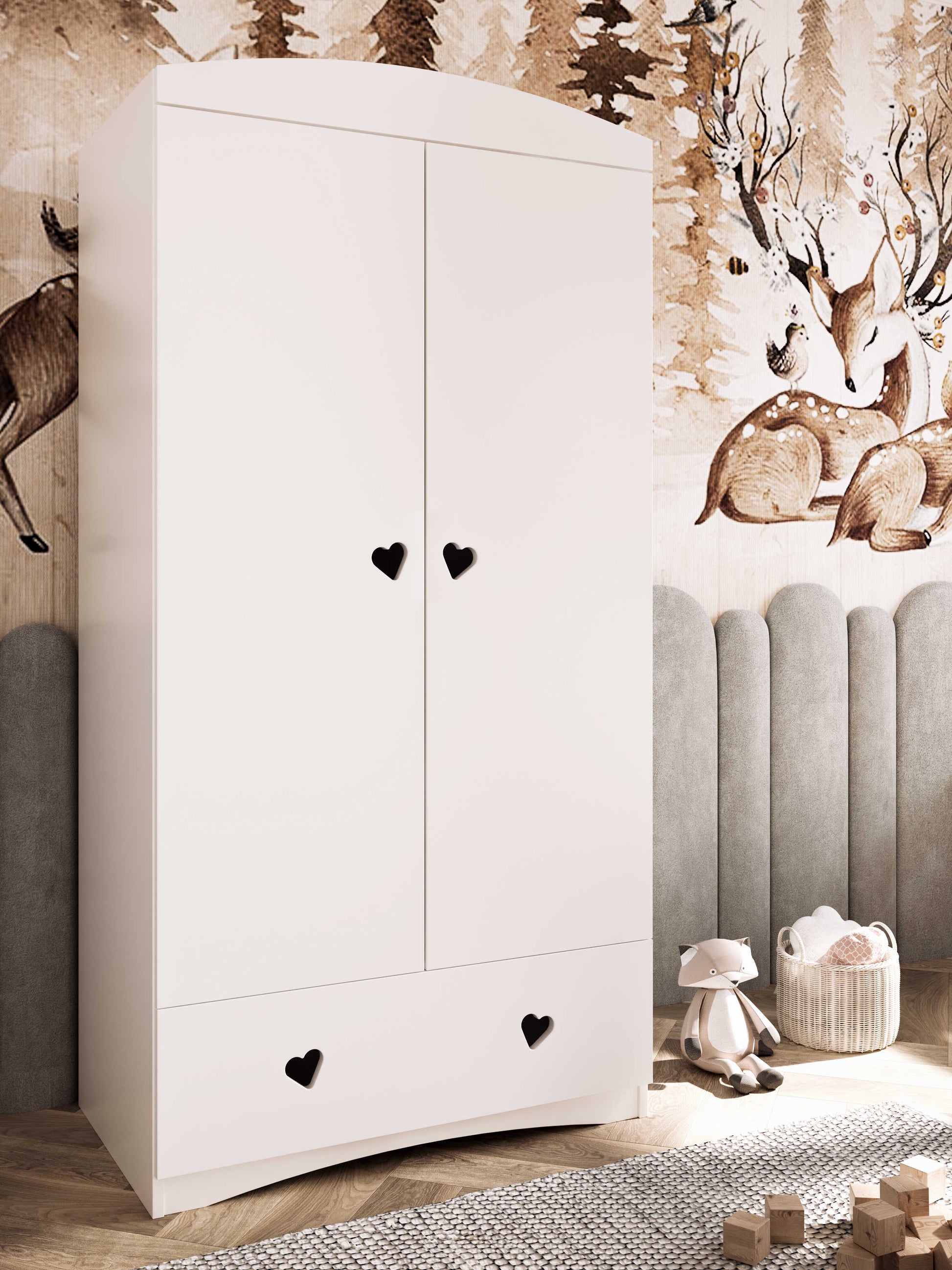 Dulapul Juliet este gândit pentru a aduce ordine, stil și un strop de delicatețe în camera copilului. Are un design modern, în nuanță albă, completat de detalii simpatice în formă de inimioară, ceea ce îl face ideal pentru un decor luminos și prietenos. Este o piesă de mobilier practică, încăpătoare și în același timp elegantă, perfectă atât pentru hainele de zi cu zi, cât și pentru articolele mai voluminoase.