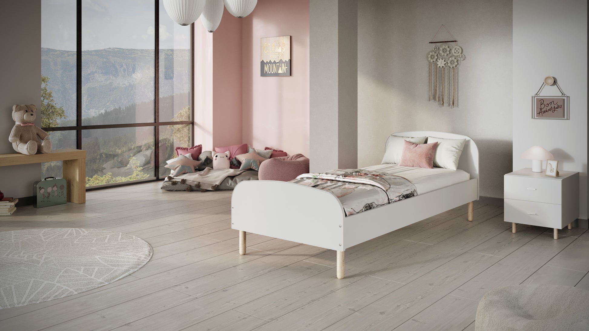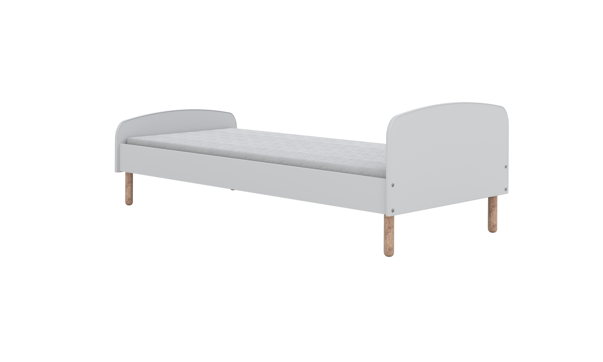 Salteaua inclusă asigură susținere corectă pentru somnul copilului, iar dimensiunea de 180x90 cm oferă suficient spațiu pentru odihnă, lectură sau joacă. Este un pat funcțional, simplu și elegant, gândit să rămână util ani la rând.